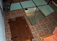 El suelo del sótano es parcialmente acristalado para poder contemplar la bóveda rehabilitada del aljibe, del que también se puede disfrutar de la bajante que lo alimentaba y vaciaba, muy bien conservada entre los cimientos actuales y cuyo extremo superior o boca se conserva cubierto por un cristal que deja apreciar la impresionante e inesperada altura.